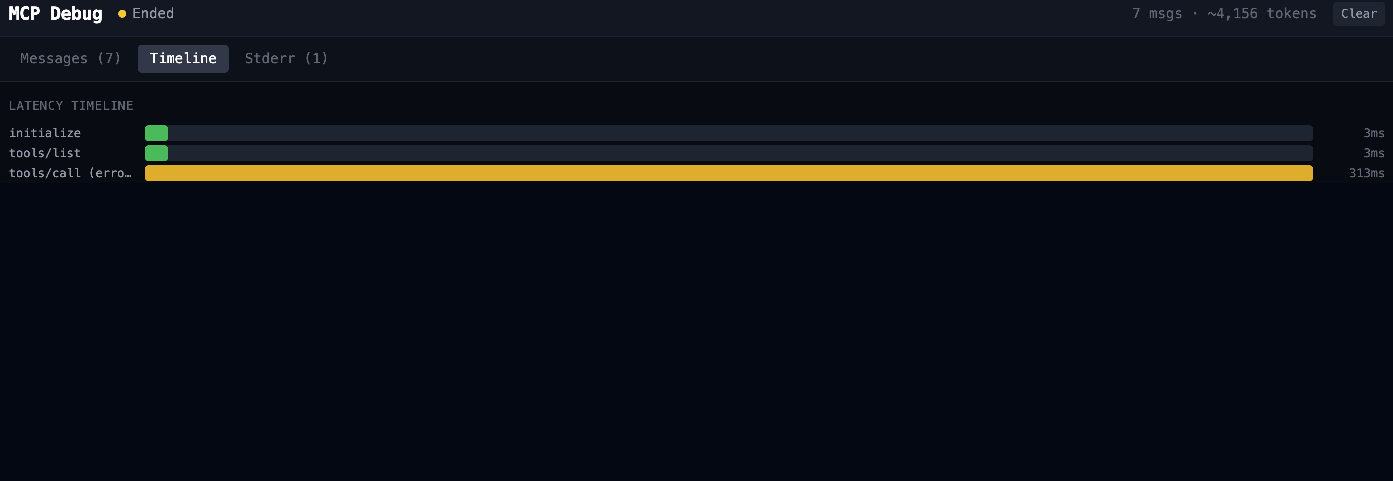 When an MCP tool returns unexpected output, fails silently, or takes longer than expected, mcp-debug shows you the exact bytes on the wire so you can diagnose the problem without guessing.